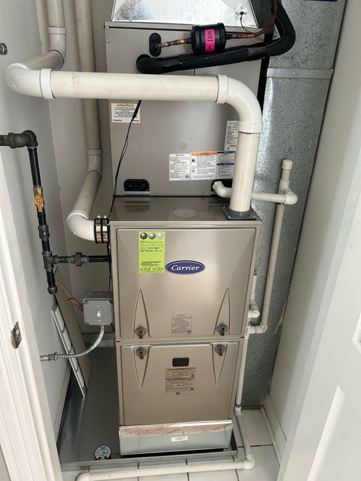 TDH install new carrier furnace ac and coil, new drain pan with safety switch.